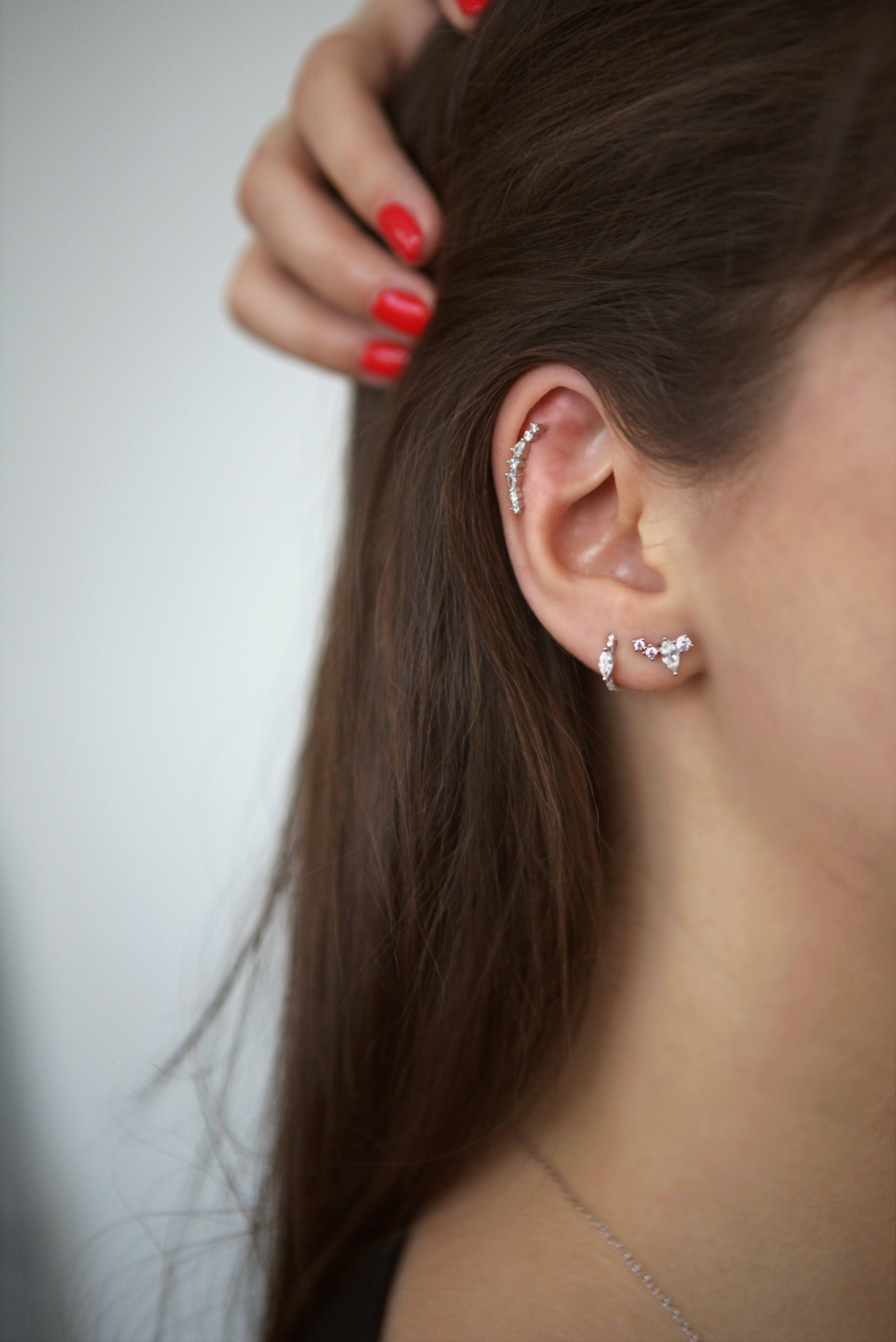 Boucle d'Oreille Double Anneaux Faux Perçing Argent et Zircon gauche